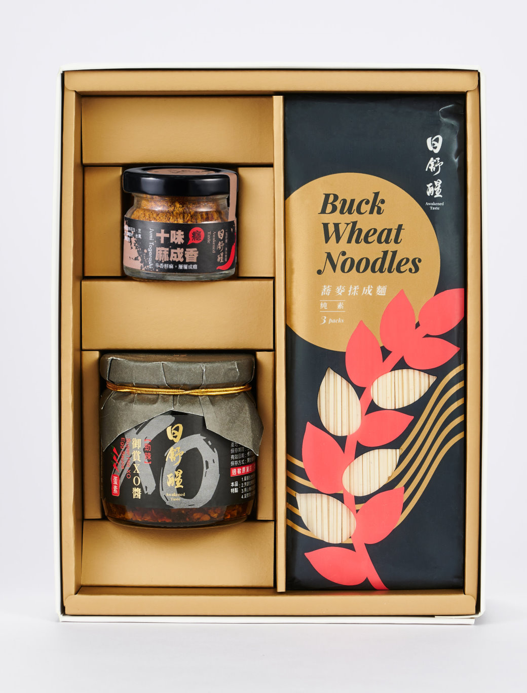 勁辣XO醬:鴨蛋、辣椒、香菇、紫菜、芥花油、黃豆油、醬油、枸杞、二砂、鹽、L-麩酸鈉、甘草。